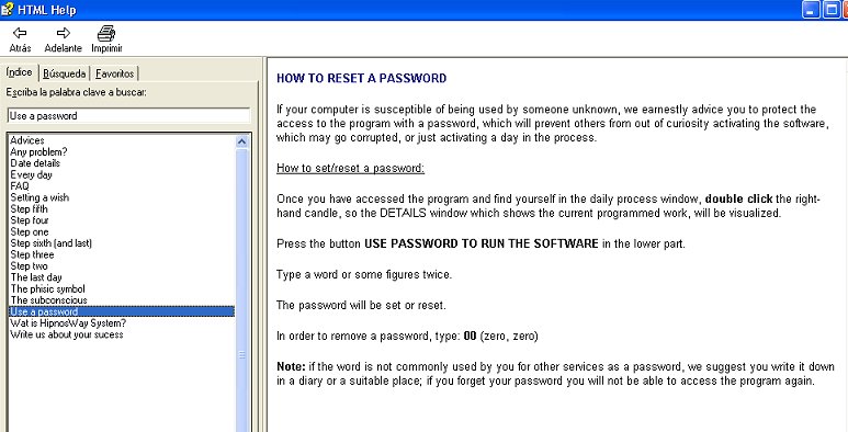 The operation of Hipnosway System is very easy, you configure the program to get a wish, a goal, a purpose. To do it you must enter your name on a form, explain what you want to achieve, choose some images associated with the theme, choose a start date from among those offered and devote every day between 10 and 15 minutes to visualize and repeat a series of sentences, everything is perfectly explained in the instructions.